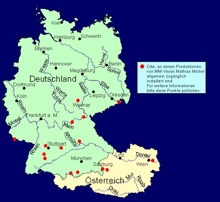 Bamberg Weimar Bad Schandau Völklingen Aalen Eberdingen-Hochdorf Rottenburg Hechingen Helmbrechts Schloss Neuschwanstein Berching Salzburg Lobau bei Wien Großweil bei Murnau St. Gilgen am Wolfgangsee